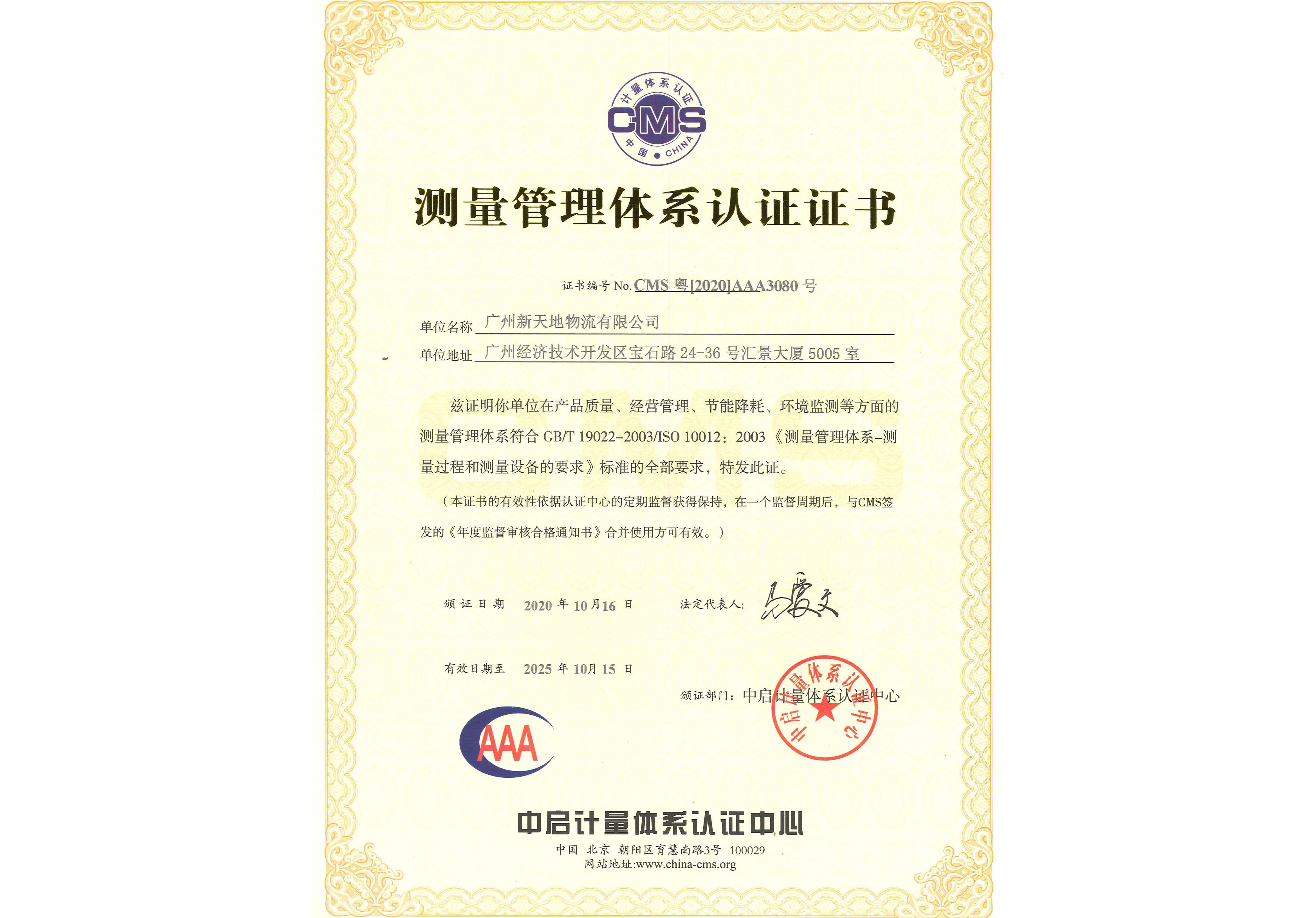 好博供应链、新天地物流均荣获CMS测量管理体系认证的3A级企业